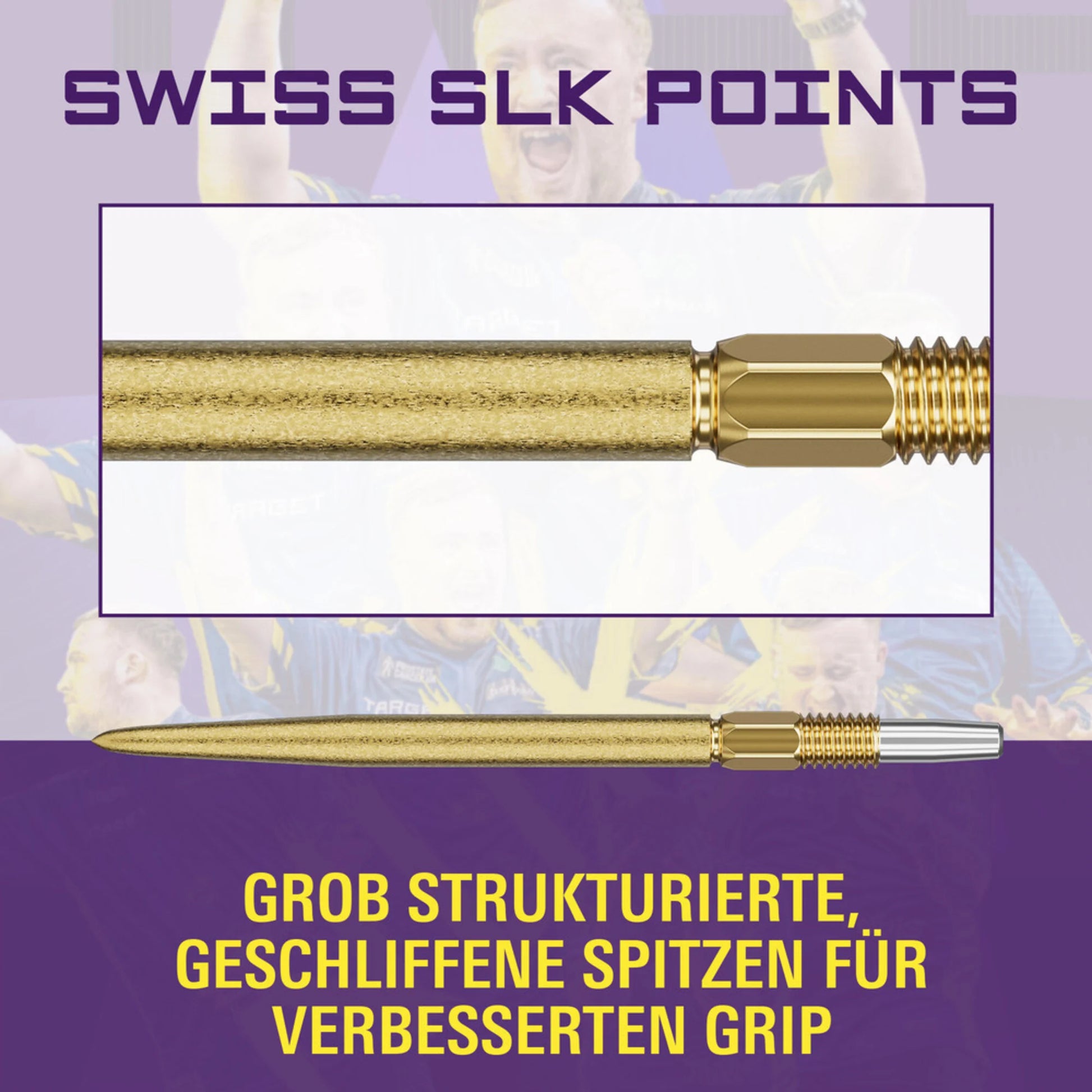 Die Target Swiss Point SLK Gold ist eine hochwertige Dartspitze, die speziell für Präzision und Langlebigkeit entwickelt wurde. Mit einer Länge von 35/42mm bietet diese Spitze eine optimale Balance zwischen Stabilität und Flexibilität, um dir ein zuverlässiges Wurferlebnis zu ermöglichen. Das elegante Gold-Design verleiht deinem Dartset einen stilvollen Look und hebt deine Ausrüstung hervor. Die Swiss Point SLK Gold ist kompatibel mit verschiedenen Swiss Point Dartpfeilen und sorgt für einen sicheren Halt im Dartboard. Perfekt für ambitionierte Spieler, die Wert auf Qualität und ein professionelles Spiel legen!